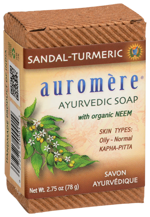 Auromere Sandal Turmeric Neem Ayurvedic Soap, 2.75 Oz. Auromere Sandal Turmeric Neem Ayurvedic Soap is naturally astringent, purifying and cooli...