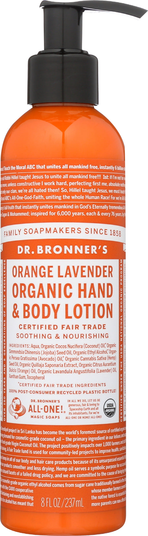 Dr. Bronner’s Orange Lavender Hand & Body Lotion, 8 Fl. Oz. Dr. Bronner’s Orange Lavender Hand & Body Lotion is made from pure organic o...