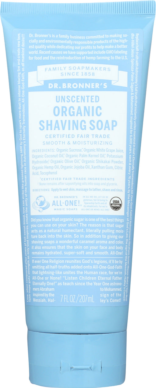 Dr. Bronner's Unscented Organic Shaving Soap, 7 Oz Dr. Bronner's Unscented Organic Shaving Soap achieve a close, comfortable shave with the plan...