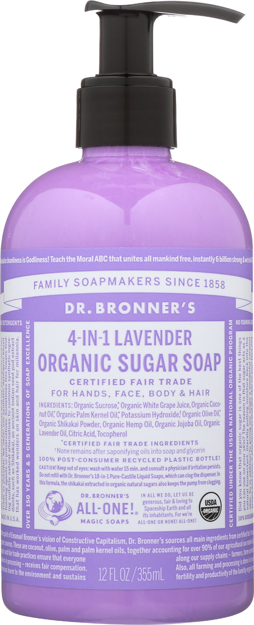 Dr. Bronner’s Organic Lavender Sugar Soap, 12 Fl. Oz. Dr. Bronner’s Organic Lavender Sugar Soap is a perfect solution for your hands, face, body...