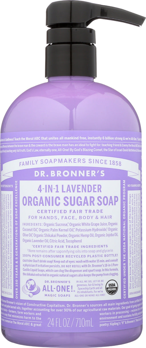 Dr. Bronner's Organic Lavender Sugar Soap, 24 fl. oz. Dr. Bronner's Organic Lavender Sugar Soap harnesses the power of organic sugar to create a...
