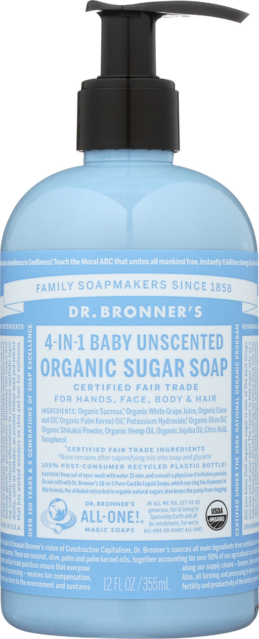 Dr. Bronner’s 4-in-1 Baby Unscented Organic Sugar Soap 12, Oz. Dr. Bronner’s 4-in-1 Baby Unscented Organic Sugar Soap provides organic body and ...