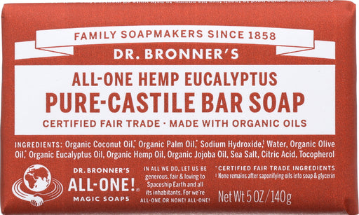Dr. Bronner’s Pure-castile HEMP Eucalyptus Bar Soap, 5 Oz. Dr. Bronner’s Pure-castile HEMP Eucalyptus Bar Soap has ingredients good for body and...