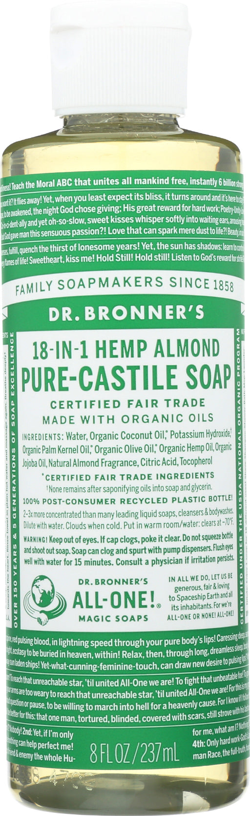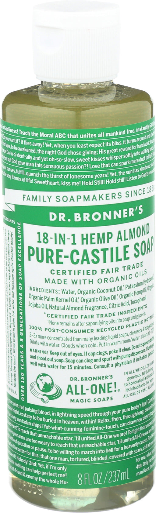 Dr. Bronner’s Pure-castile HEMP Almond Soap, 8 Fl. Oz. Dr. Bronner’s Pure-castile HEMP Almond Soap is warm, comforting and slightly sweet like m...