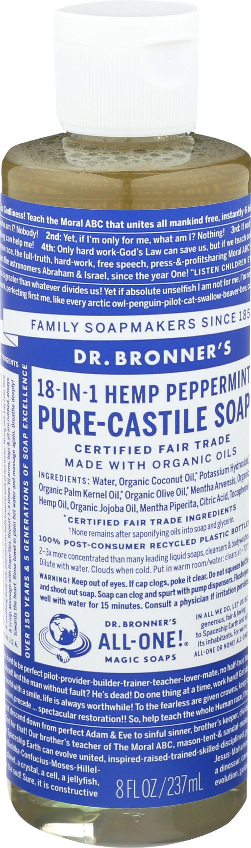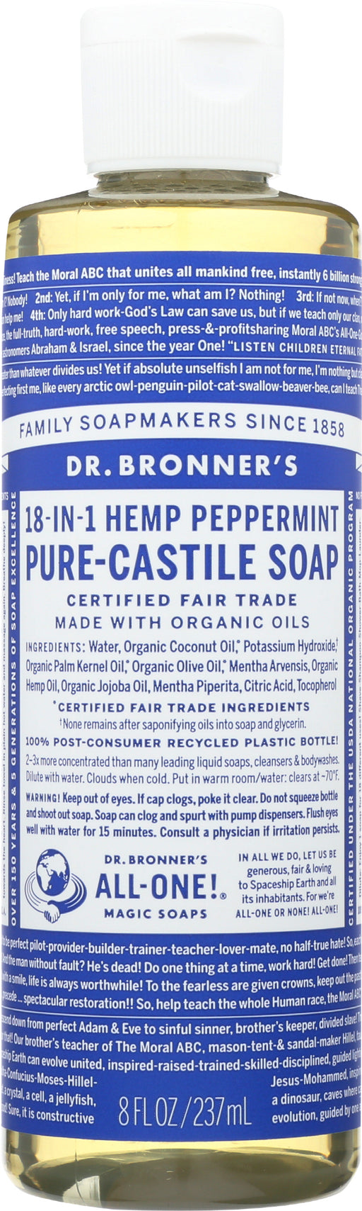 Dr. Bronner’s Pure-castile HEMP Peppermint Soap, 8 Fl. Oz. Dr. Bronner’s Pure-castile HEMP Peppermint Soap is scented with organic peppermint oi...