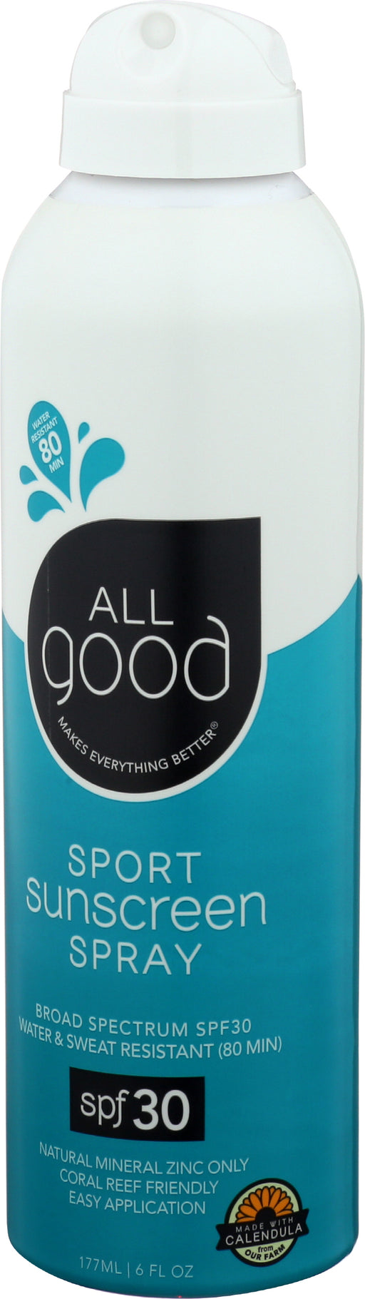 All Good Sunscreen Spray Sport, 6 Fl oz All Good Sunscreen Spray Sport is a mineral sunscreen spray that isn’t sticky, greasy, smelly or full o...