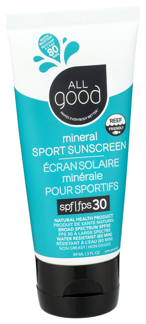 All Good Sunscreen Lotion Sport, 3 Fl oz All Good Sunscreen Lotion Sport not all sunscreens are created equal. Our SPF30 Sport Mineral Sunscreen...