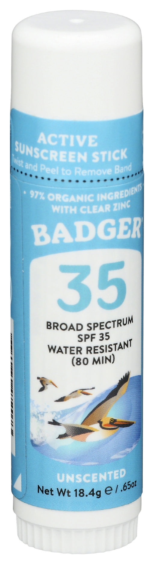 Badger SPF 35 Active Mineral Face Stick Unscented, 0.65 Oz Badger SPF 35 Active Mineral Face Stick Unscented is pocket-sized mineral sunscreen ...