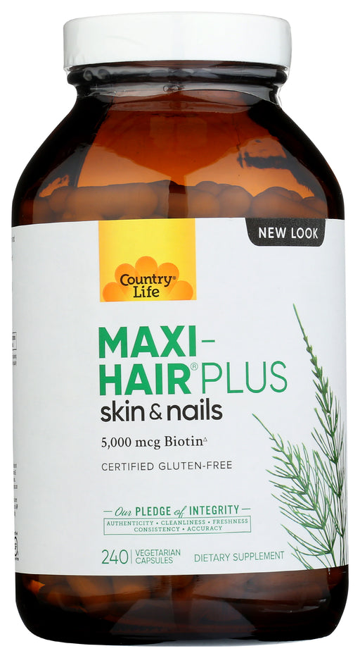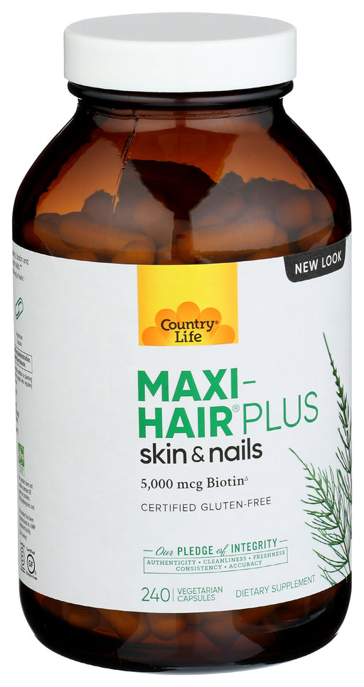 Country Life Maxi-Hair Plus Dietary Supplement, 240 Capsules Country Life Maxi-Hair Plus Dietary Supplement contains 5 MCG of biotin per four-ca...