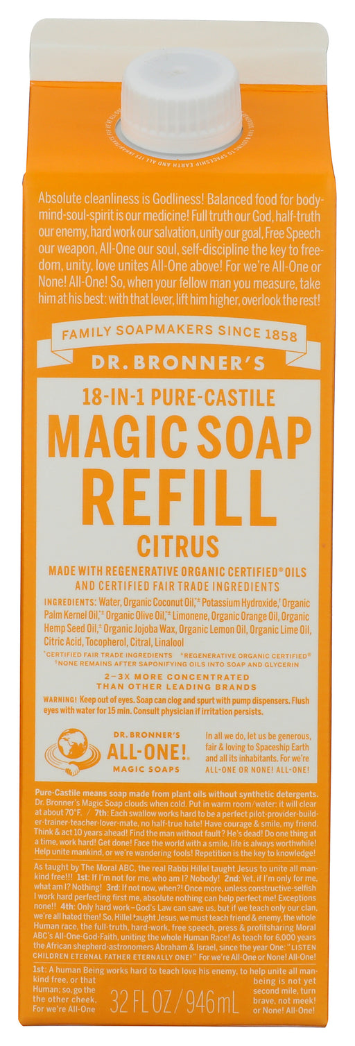 Dr. Bronner's Citrus Pure-Castile Liquid Soap-Refill Carton, 32 Fluid Ounce Dr. Bronner’s Citrus Liquid Pure-Castile Liquid Soap-Refill Carton, ...