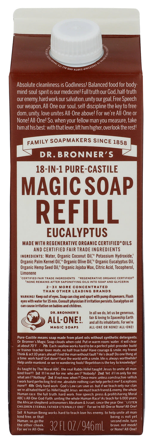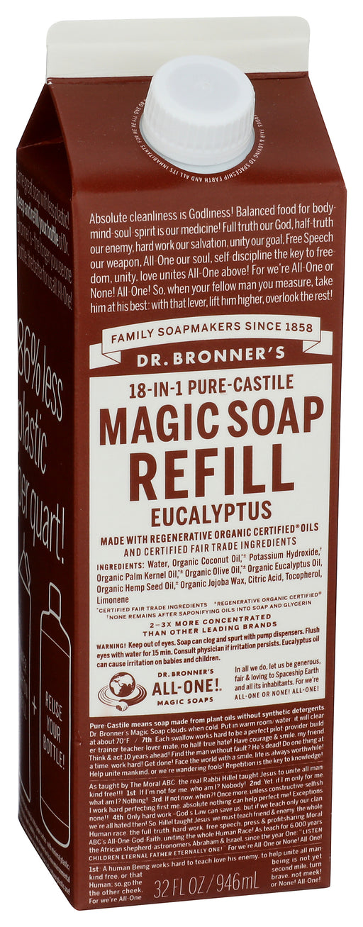 Dr. Bronner's Eucalyptus Pure-Castile Liquid Soap-Refill Carton, 32 Fluid Ounce Dr. Bronner's Eucalyptus Pure-Castile Liquid Soap-Refill Carton ...