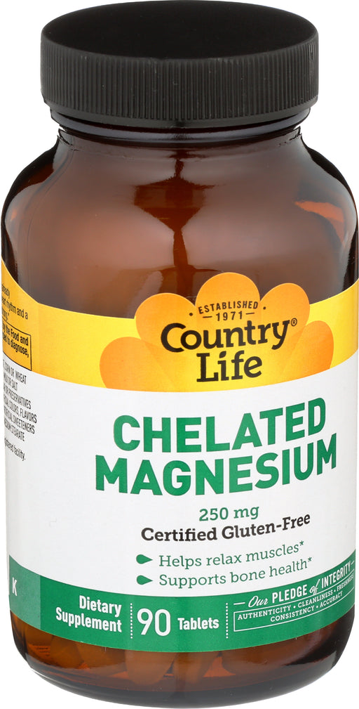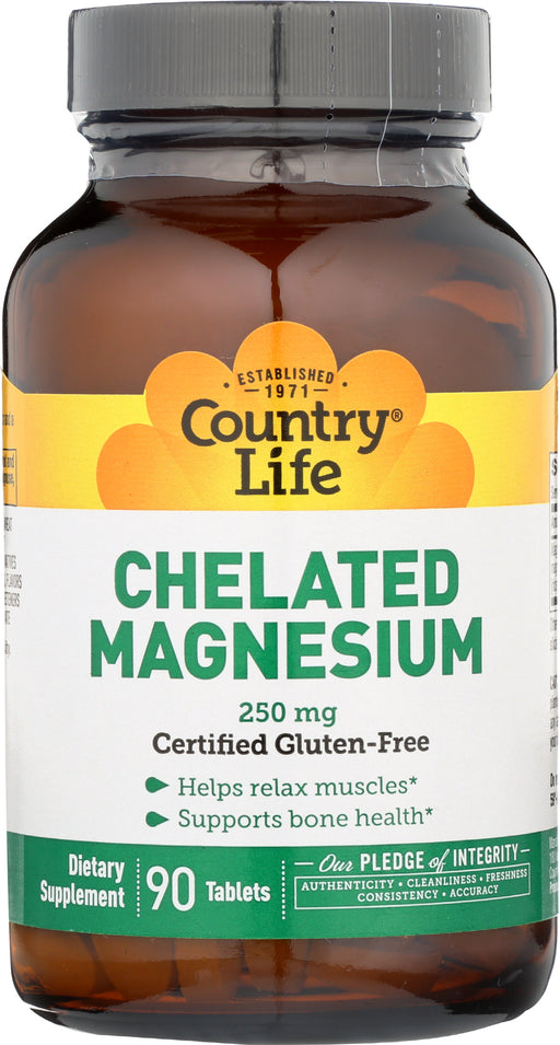 Country Life Chelated Magnesium 250 Mg 90 Tab Country Life's Chelated Magnesium Glycinate is fully reacted with an amino acid chelate. It offers...