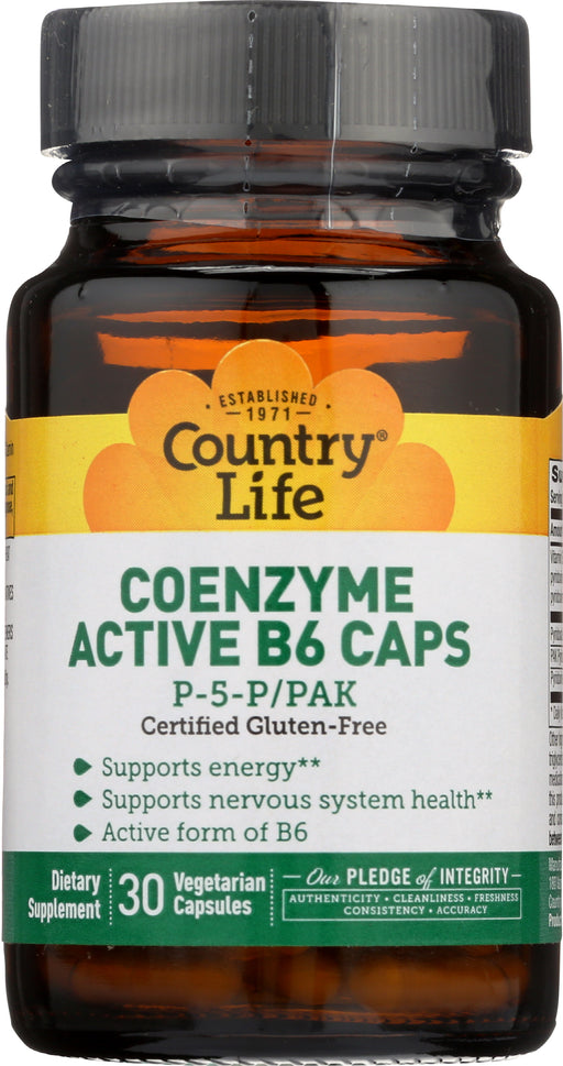 Country Life Coenzyme Active B6 Caps P-5-p/pak, 30 Vegetarian Capsules Country Life Coenzyme Active B6 Caps P-5-p/pak supports several key funct...