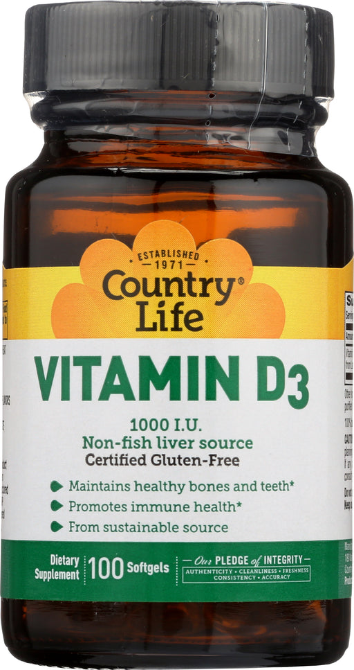 Country Life Vitamin D3 1000 IU Dietary Supplement, 100 Softgels Country Life Vitamin D3 1000 IU Dietary Supplement helps promote immune health ...