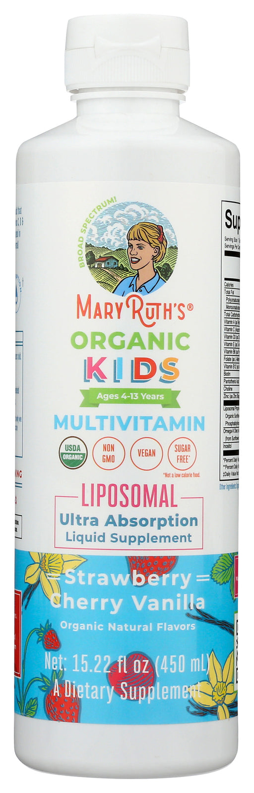 Mary Ruth's Organic Kids Multivitamin Liposomal Strawberry Cherry Vanilla, 15.22 Ounce Mary Ruth's Organic Kids Multivitamin Liposomal Strawberr...