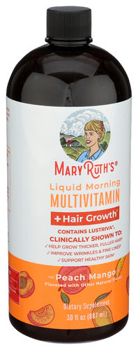 Mary Ruth's Liquid Morning Multivitamin + Hair Growth Peach Mango, 30 Fluid Ounce Mary Ruth's Liquid Morning Multivitamin + Hair Growth Peach Ma...