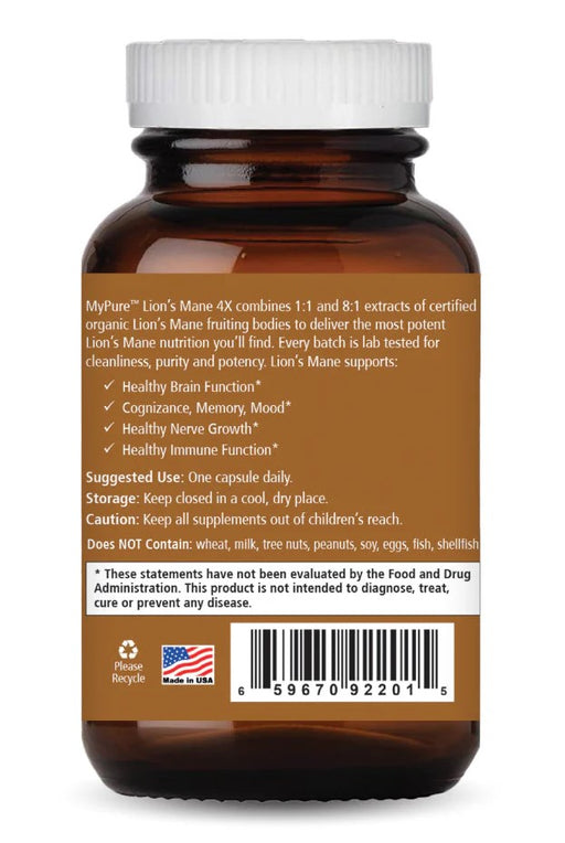 Pure Essense MyPure Lion's Mane 4x, 30 vcap MyPure lion's mane 4x therapeutic level of support for brain and neurological health. * Non-GMO....