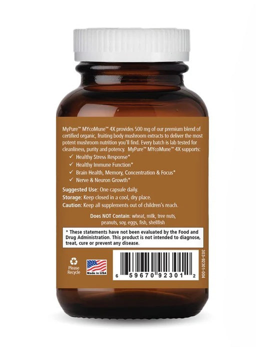Pure Essense MyPure MYcoMune 4X, 30 vcap MyPure MYcoMune 4X blend of therapeutic level of mushrooms to support immune health. * Non-GMO. V...