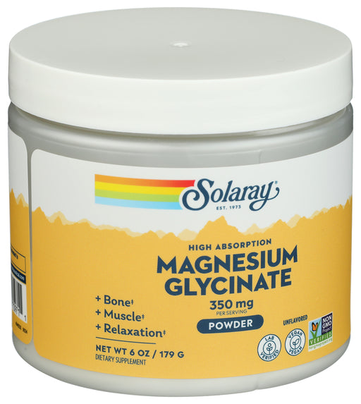 Solaray Magnesium Glycinate Powder, 6 oz Solaray Magnesium Glycinate Powder is the high-absorption magnesium you count on to help fuel your heal...