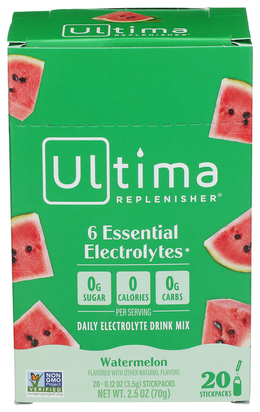 Ultima Replenisher Electrolyte Watermelon Drink Mix 2.5 Oz Ultima Replenisher Electrolyte Watermelon Drink hydration powder, made with real frui...