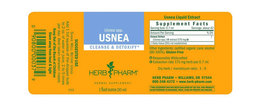 Herb Pharm Usnea Extract 1 oz Cleanse & detoxify. Dry herb / menstruum ratio: 1:4. Usnea liquid extract. Usnea spp. Keep out of r...