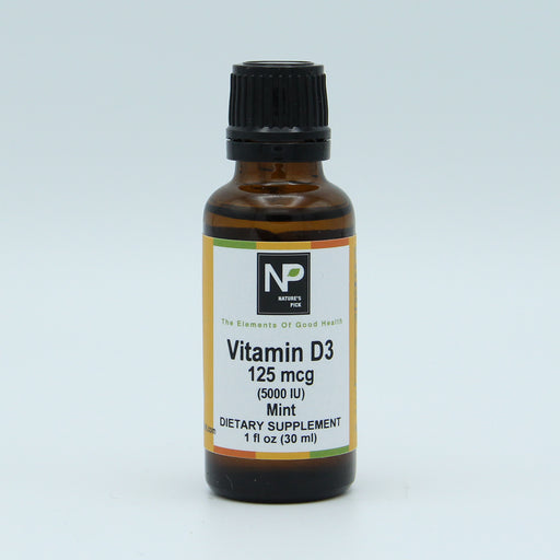 Nature's Pick Vitamin D3 125 mcg ( 5000 IU ), Mint, 1 floz Nature's Pick Vitamin D3 125 mcg (5000 IU), Mint can be taken as 5 drops once per da...