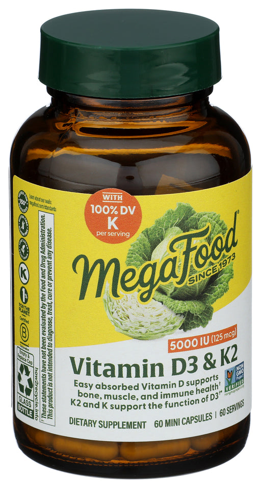 MegaFood Vitamin D3 & K2 5000 IU, 60CT MegaFood Vitamin D3 & K2 5000 IU supports a healthy immune system and strong bones. Vitamin D3 c...