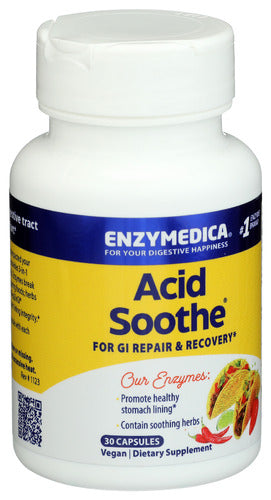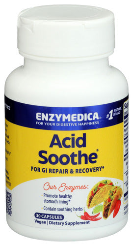 Enzymedica Acid Soothe, 30 Capsules Enzymedica Acid Soothe is formulated to relieve heartburn symptoms. Contains enzymes papaya leaf and other b...