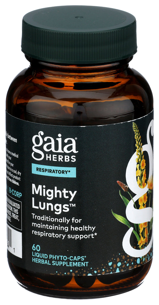 Gaia Herbs Mighty Lungs, 60 Caps Formulated to help maintain lung health and function. Contains Mullein, Plantain, Schisandra and Elecampan...
