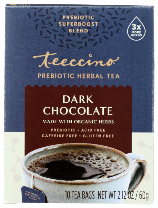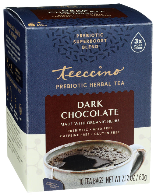 Teeccino Prebiotic Herbal Tea Dark Chocolate 2.12 Oz Teeccino Prebiotic Herbal Tea Dark Chocolate is a rich layer upon layer of dark chocolate f...