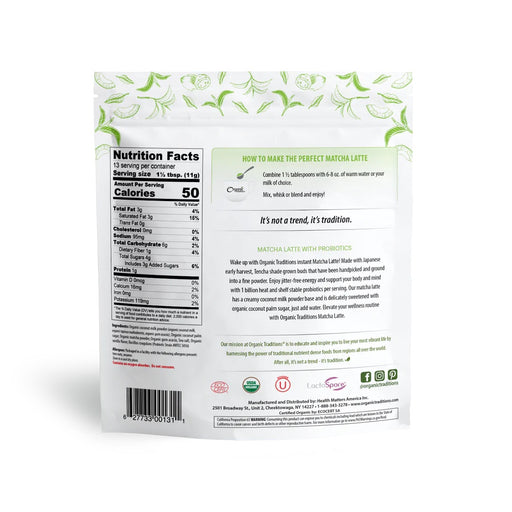 Organic Traditions, Organic Matcha Latte with Probiotics, 5.3 oz Organic Traditions, Organic Matcha Latte with Probiotics is just add water for ...