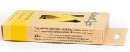 - Recycled / recyclable box printed with vegetable-based inks, plant-based bio-plastic window cover.