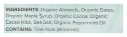 - Made with only 7 simple ingredients almonds dates maple syrup cocoa cacao nibs sea salt peppermint oil.