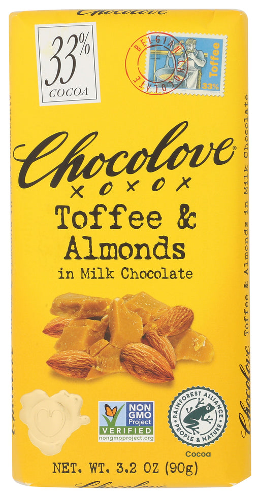 Chocolove Chocolate , Toffee & Almonds In Milk Chocolate, 3.2 Oz. Chocolove Chocolate bar, Toffee Almonds In Milk Chocolate is a 3.2 oz bar ...