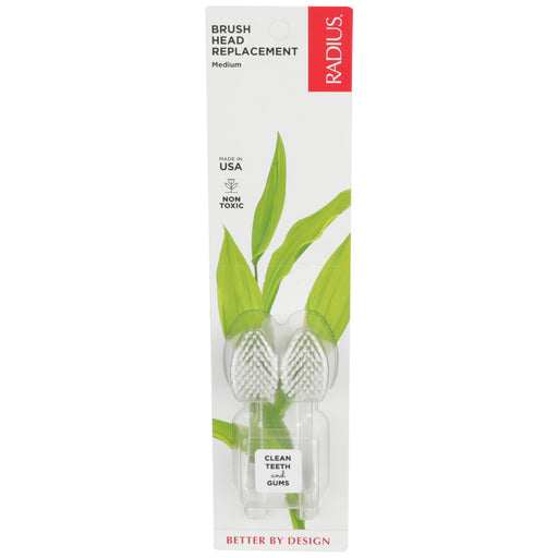 Radius Toothbrush, Replacement Head 2-pack, Medium, 1 Each Radius Toothbrush, Replacement Head 2-pack, Medium are made with 100% vegetable brist...