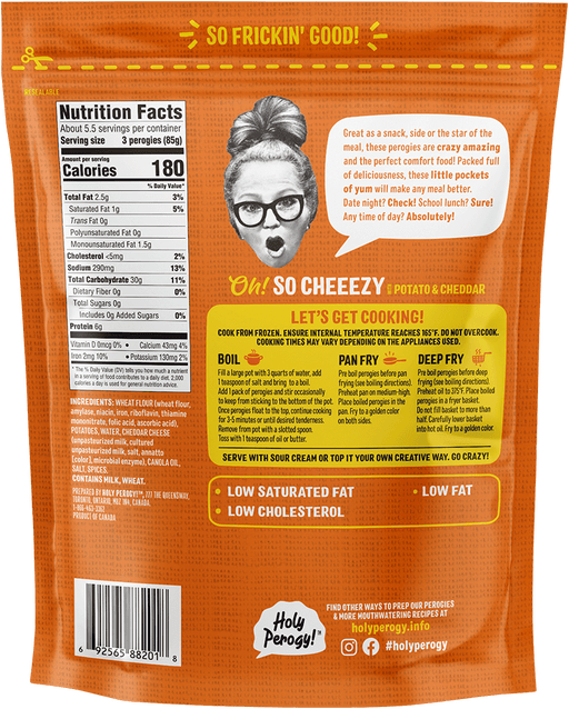 Holy Perogy Potato and Cheddar Perogies, 16 oz Great as the star of the meal, side or snack, these perogies are crazy amazing and the perfect c...