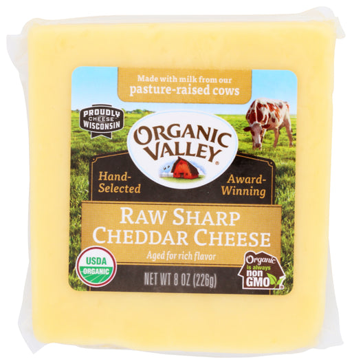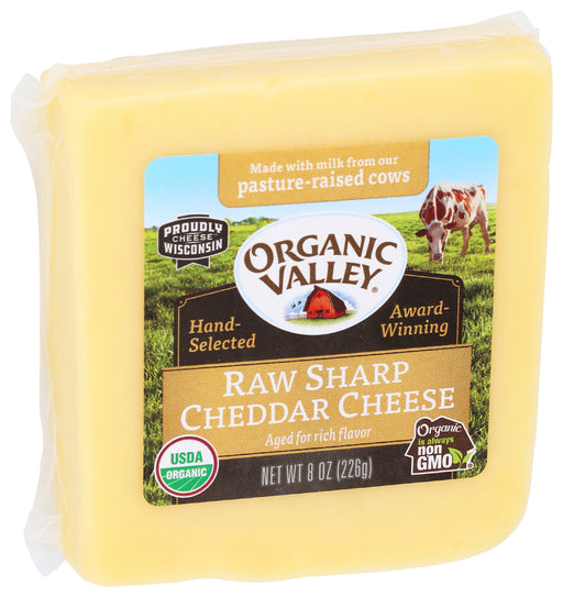 Organic Valley , Raw Sharp Cheddar Cheese Block, 8 oz Our Grassmilk Raw Sharp Cheddar Cheese begins with unpasteurized milk from grass-fed cows...