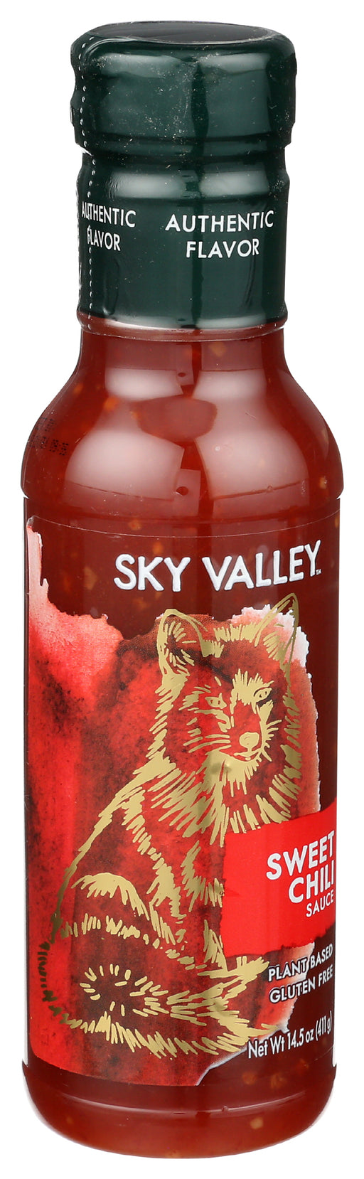 Sky Valley Sweet Chili Sauce, 14.5 oz Authentic flavor. Mild. Gluten free. Sweet, but with heat, Our sweet chili sauce is a thai staple...