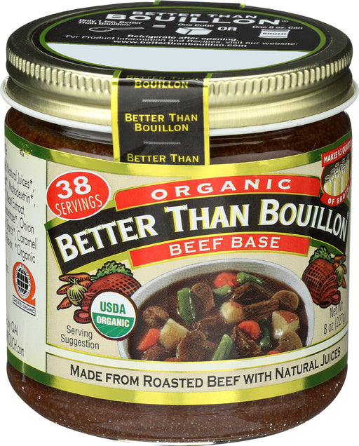 Better Than Bouillon Organic Beef Base, 8 oz. Jar Better Than Bouillon Organic Beef Base is a food base substitute most often used in soups, sau...