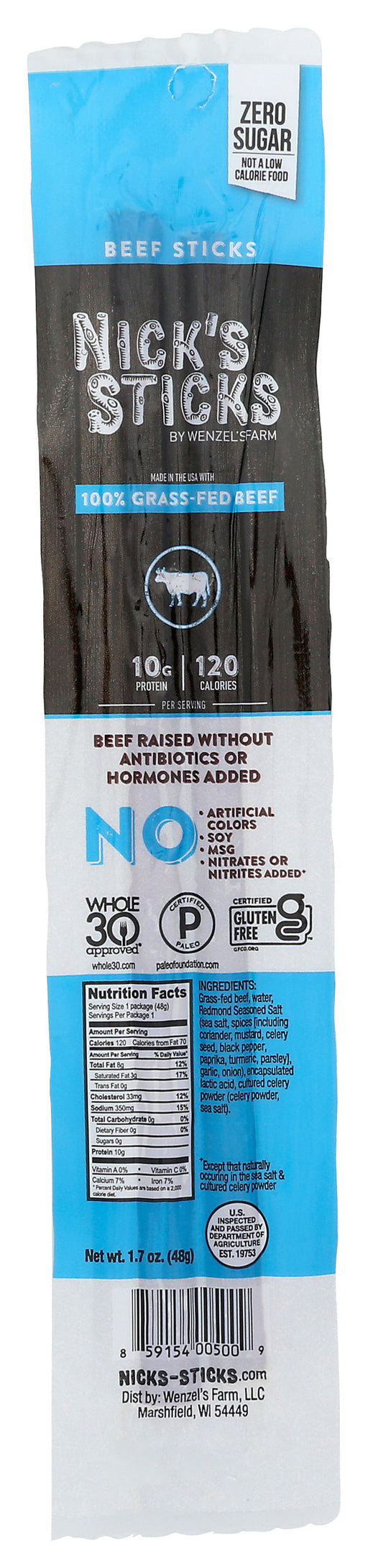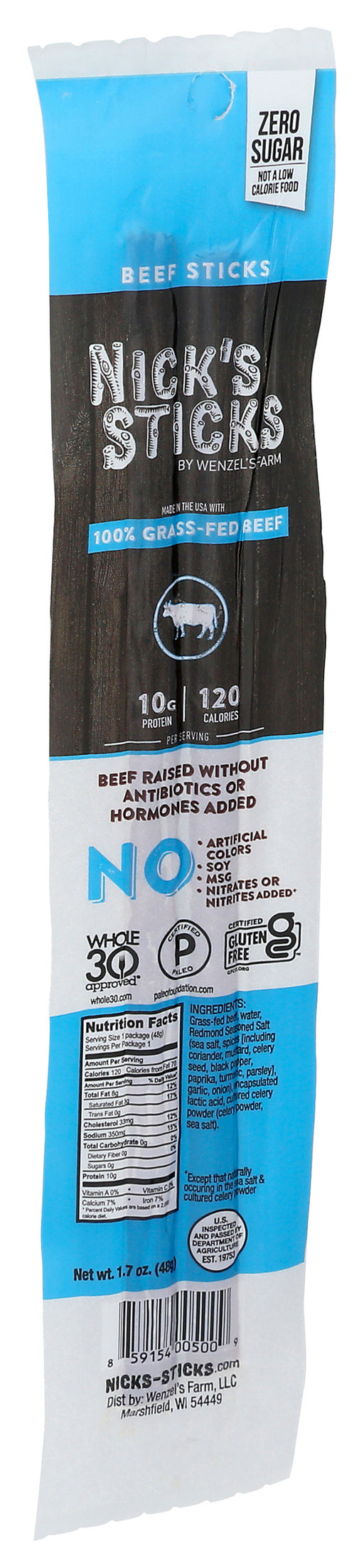 Nick's Sticks Original Grass-Fed Beef, 1.7 Oz Nick's Sticks, Original Grass-Fed Beef are 100% gluten-free beef sticks. These wholesome snacks ar...
