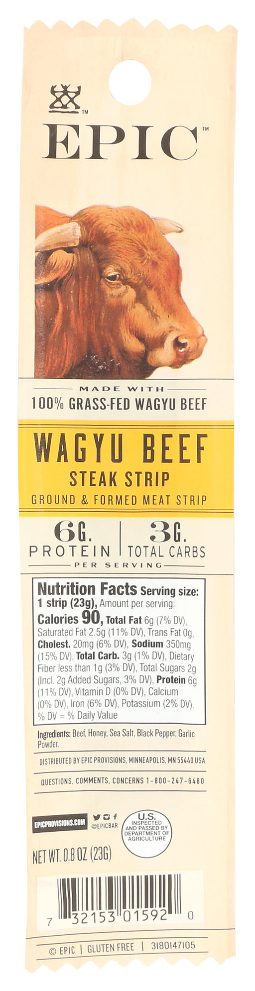 Epic Strip-Steak-Wagyu Beef, 0.8 Oz Epic Strip-Steak-Wagyu Beef is a mouth-watering convenient beef snack that tastes epic. It is made from glut...