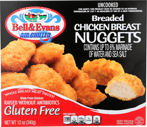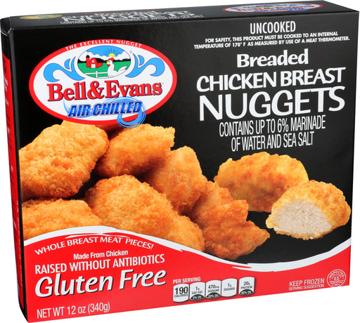 Bell & Evans Chicken Nuggets S0 12 Oz 100% Whole chicken breast meat pieces are lightly breaded with our gluten free breading for a great ta...