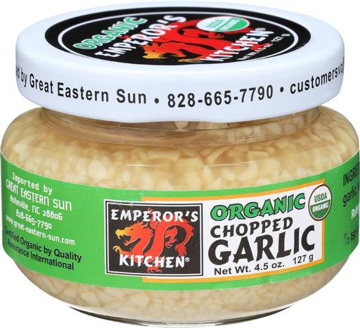 Emperor's Kitchen Organic Chopped Garlic, 4.5 Oz. Emperor's Kitchen Organic Chopped Garlic is convenient and versatile to use in cooking. With t...