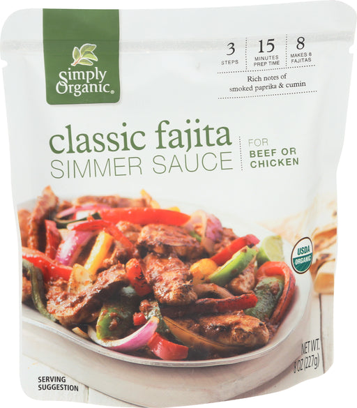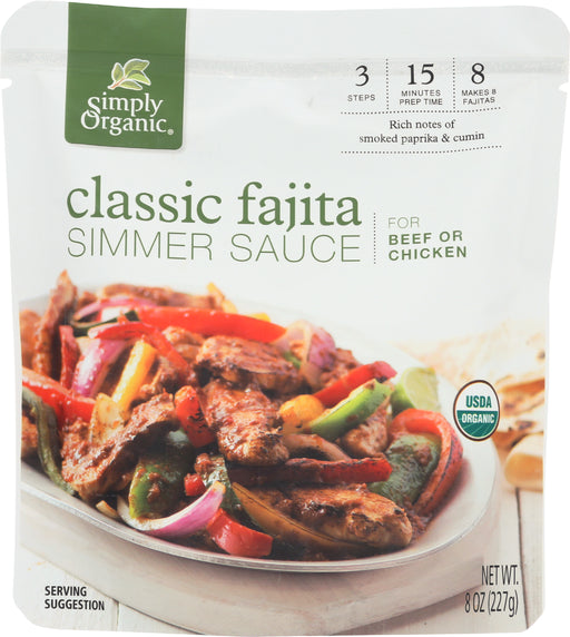 Simply Organic Classic Fajita Simmer Sauce, 8 Oz. Simply Organic Classic Fajita Simmer Sauce has seasoning that's perfectly balanced with a plea...