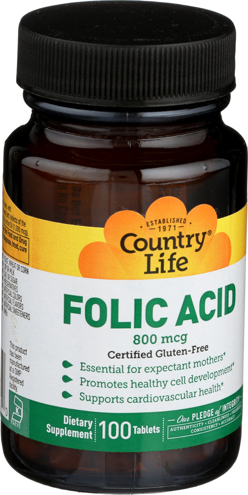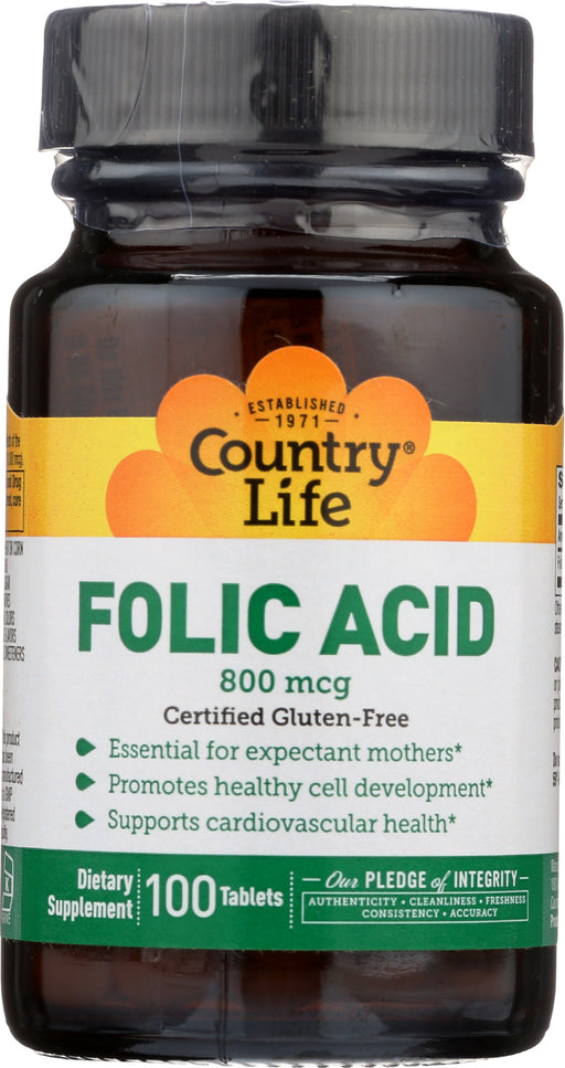 Country Life Folic Acid Dietary Supplement, 100 Count Country Life Folic Acid Dietary Supplement enhances cell division, promotes proper blood c...