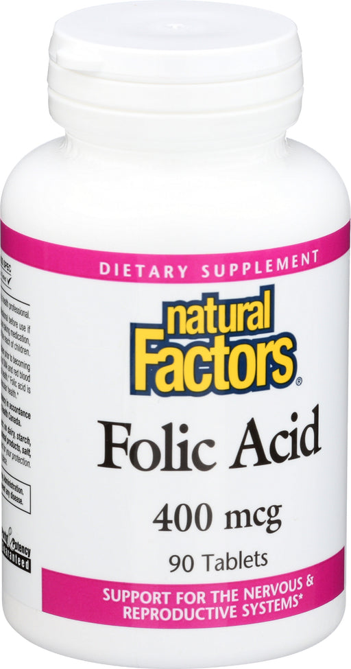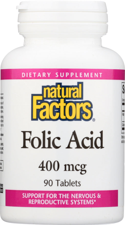 Natural Factors Folic Acid, 90 Tablets Natural Factors Folic Acid contains 450 mcg of Natural Folic Acid plus 20 mg of calcium in each tablet. T...
