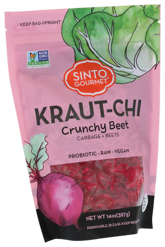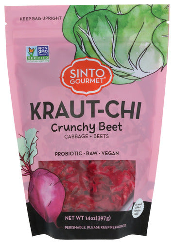 Sinto Gourmet Kraut-Chi Crunchy Beet Fermented, 14 Ounce Kraut-chi is a hybrid of kimchi and kraut, using sauerkraut's traditional ingredients a...
