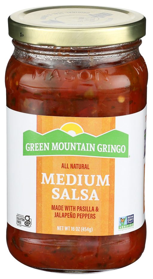 Green Mountain Gringo Salsa, Medium, 16 Oz Green Mountain Gringo Medium Salsa is an all natural salsa. It is certified gluten-free, kosher-parve...