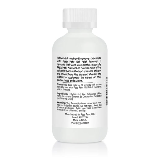 Piggy Paint Nail Polish Remover, 4 floz Eco-friendly. No acetone. Contains aloe vera and vitamin E. 99% ethyl alcohol.