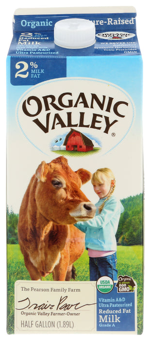 Organic Valley Reduced Fat Milk, 2% Milk Fat, 0.5 Gal.